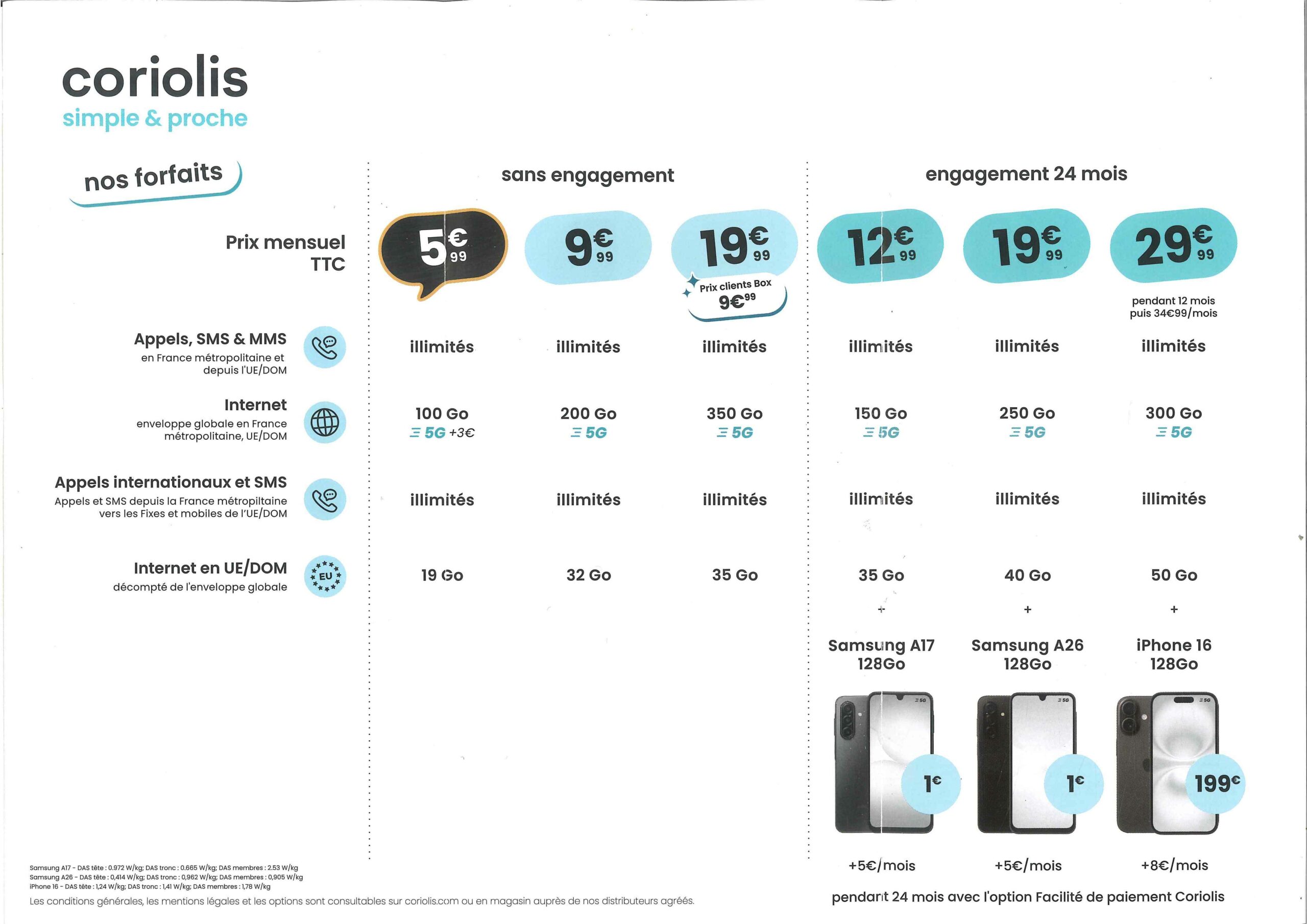 Vous y trouverez les offres des opérateurs NRJ Mobile, Coriolis et Bazile; ainsi que des offres internet Adsl et fibre tout opérateurs.